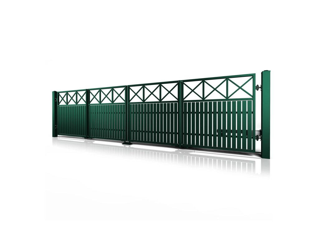 Dvoukřídlá skládací brána 10-115, ocelová, bezúdržbová, na míru (šířka 1200 - 6000 mm, výška 1100 - 1950 mm), zelená RAL 6005 matná