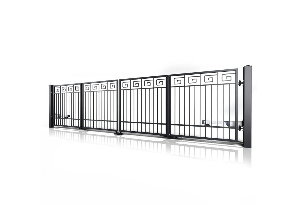 Dvoukřídlá skládací brána 10-52, kovaná, bezúdržbová, na míru (šířka 1200 - 6000 mm, výška 1000 - 2000 mm), černá RAL 9005 matná