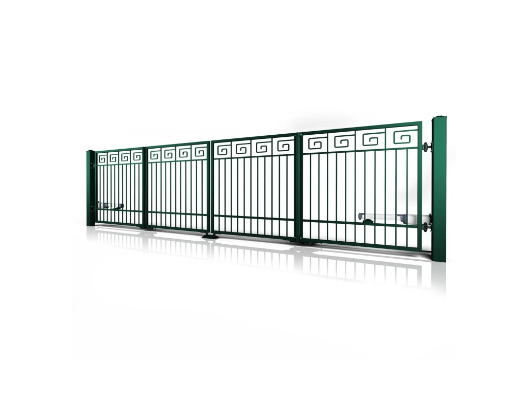 Dvoukřídlá skládací brána 10-52, kovaná, bezúdržbová, na míru (šířka 1200 - 6000 mm, výška 1000 - 2000 mm), zelená RAL 6005 matná