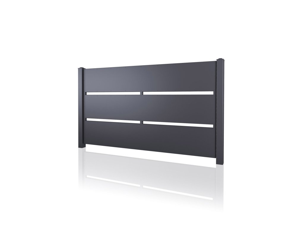 Plotové pole 10-110, ocelové, bezúdržbové, na míru (šířka 200–3300 mm, výška 600–2000 mm), antracit RAL 7016 matná