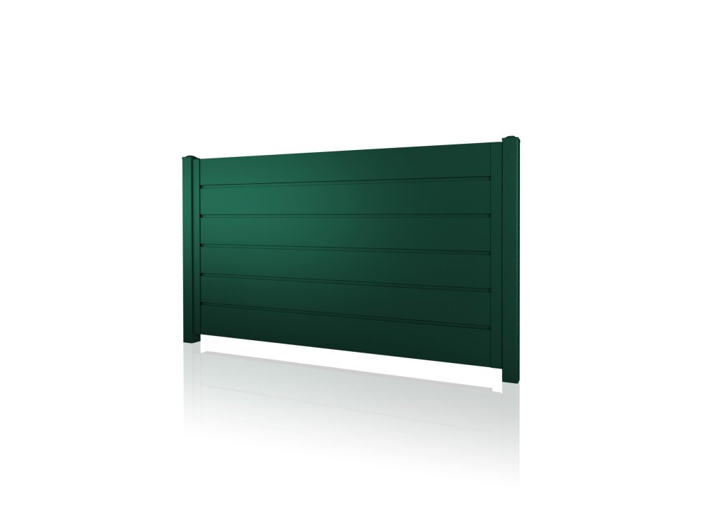 Plotové pole 10-200, ocelové, bezúdržbové, výplň 250 mm, na míru (šířka 400–3000 mm, výška 1000–2000 mm), zelená RAL 6005 matná