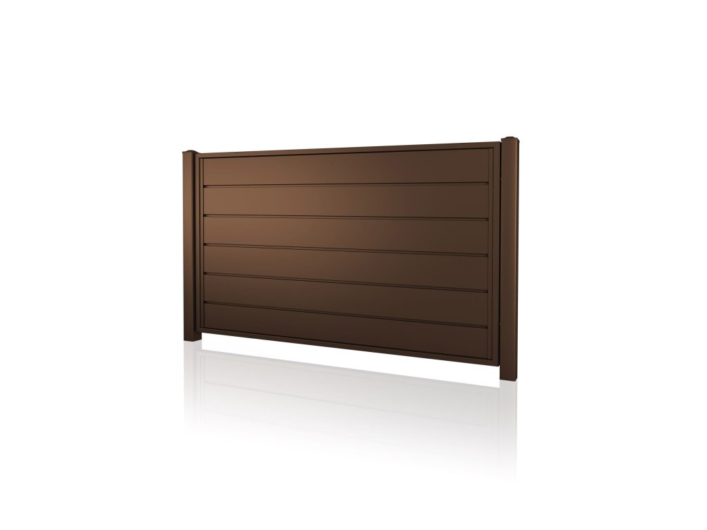 Plotové pole 10-228, ocelové, bezúdržbové, bez mezery, na míru (šířka 500–3000 mm, výška 550–2050 mm), hnědá RAL 8014 matná