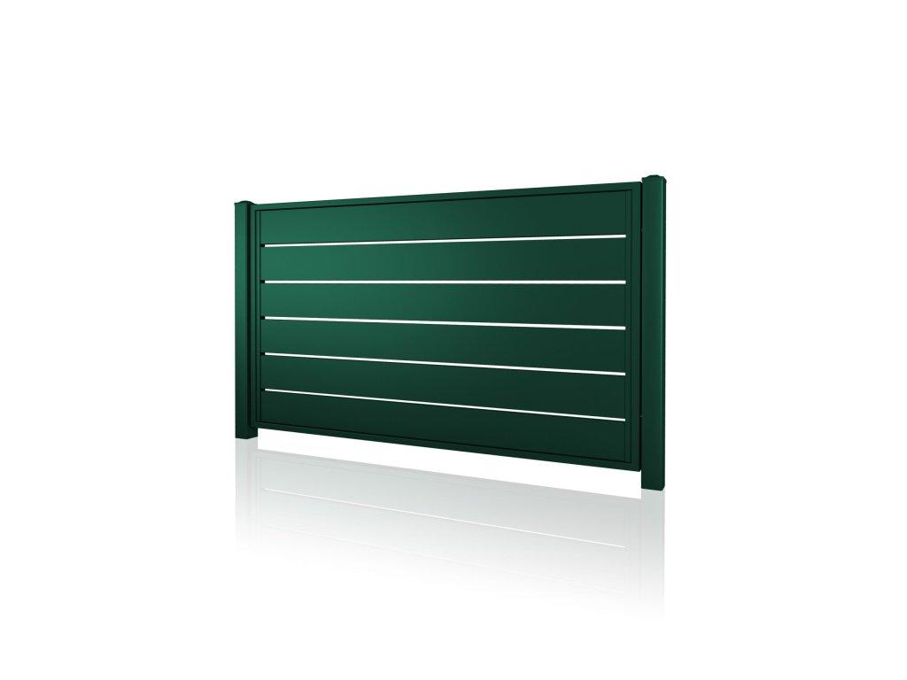 Plotové pole 10-228, ocelové, bezúdržbové, s mezerou, na míru (šířka 500–3000 mm, výška 550–2050 mm), zelená RAL 6005 matná
