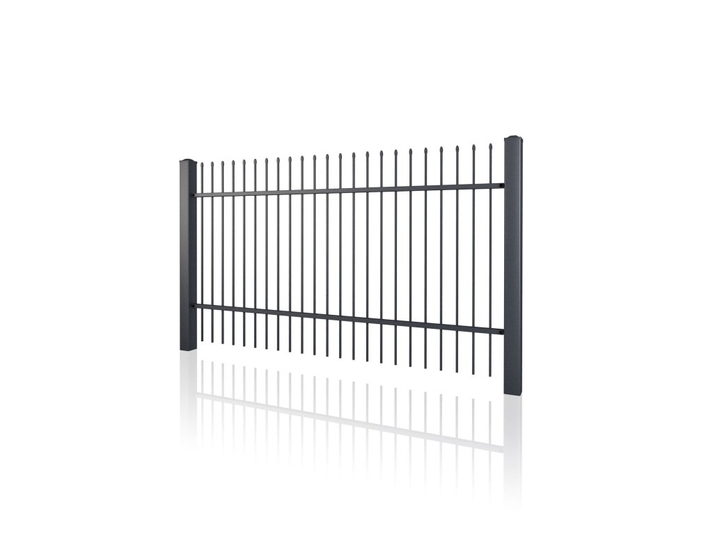 Plotové pole STYLE 10-07, kované, bezúdržbové, na míru (šířka 120–3300 mm, výška 450–1750 mm), černá struktura RAL 9005