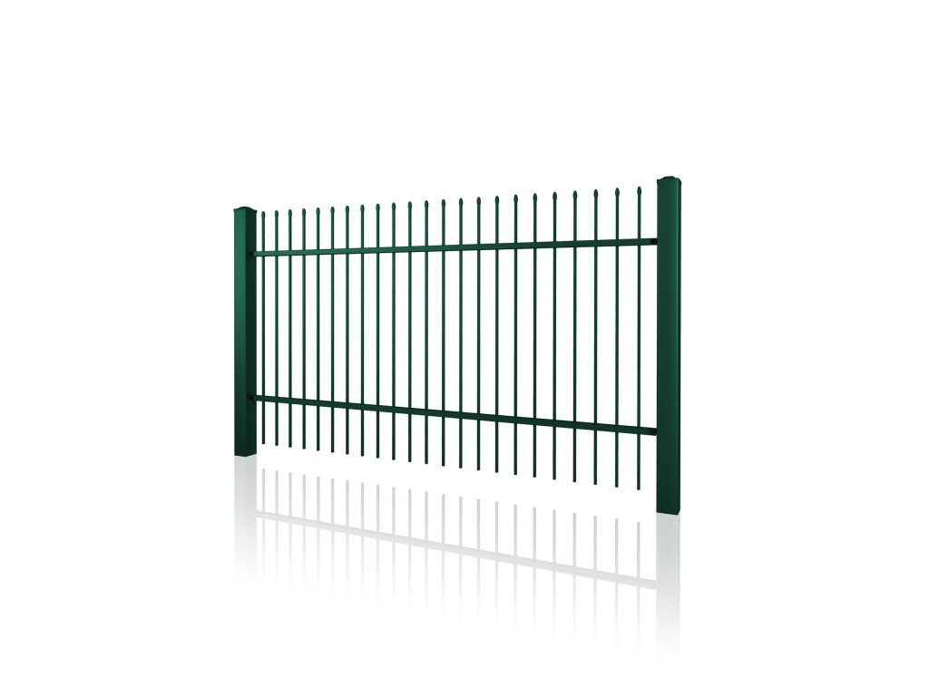 Plotové pole STYLE 10-07, kované, bezúdržbové, na míru (šířka 120–3300 mm, výška 450–1750 mm), zelená RAL 6005 matná