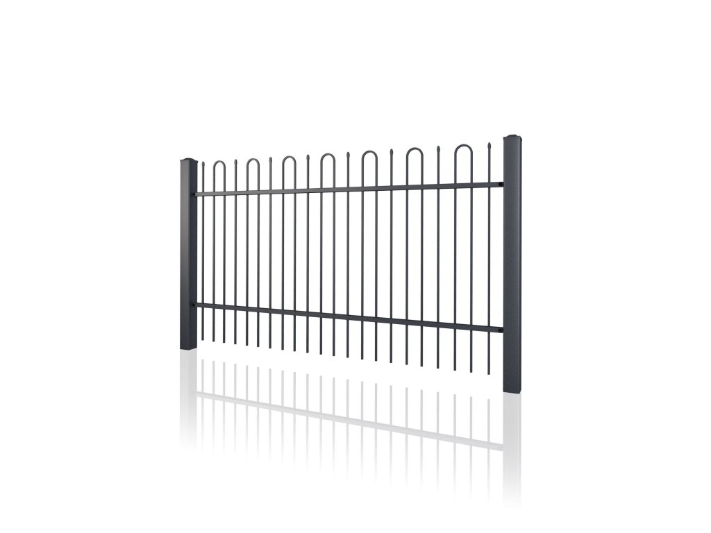 Plotové pole STYLE 10-08, kované, bezúdržbové, na míru (šířka 380–3300 mm, výška 450–1750 mm), černá struktura RAL 9005