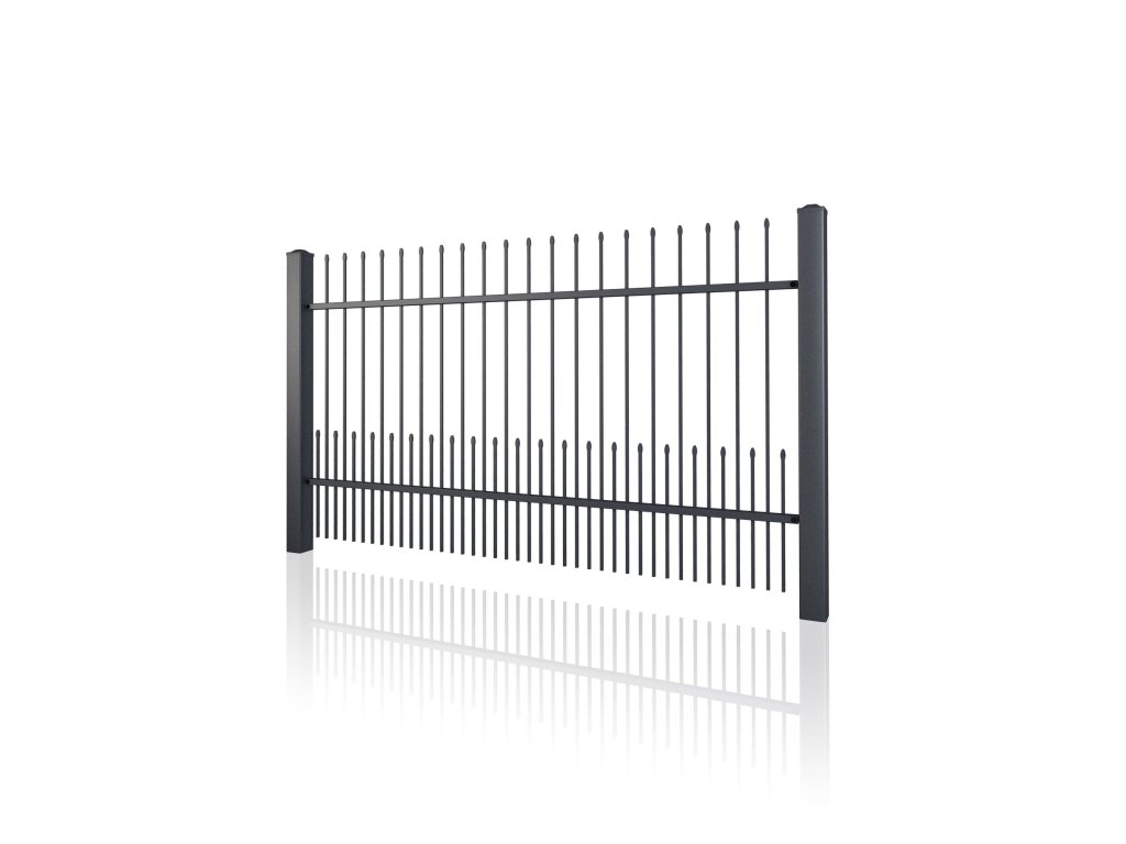 Plotové pole STYLE 10-15, kované, bezúdržbové, na míru (šířka 200–3300 mm, výška 520–1750 mm), černá struktura RAL 9005