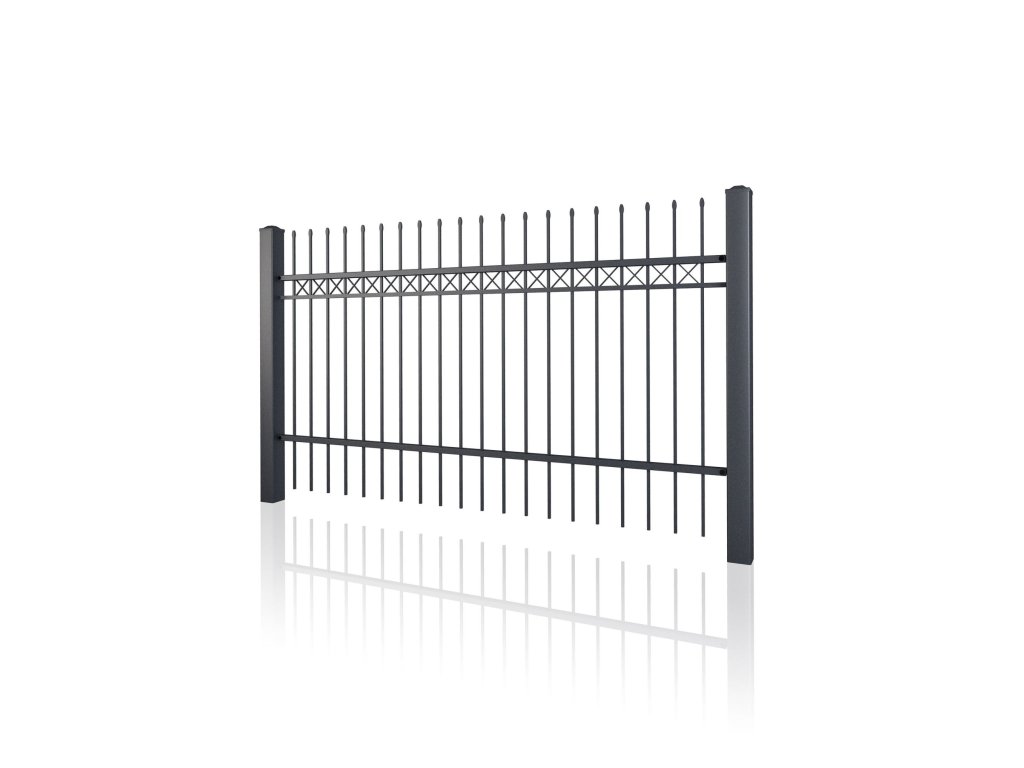 Plotové pole STYLE 10-20, kované, bezúdržbové, na míru (šířka 140–3300 mm, výška 600–2000 mm), černá struktura RAL 9005
