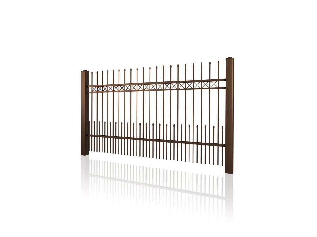 Plotové pole STYLE 10-21, kované, bezúdržbové, na míru (šířka 300–3300 mm, výška 650–1750 mm), hnědá RAL 8014 matná