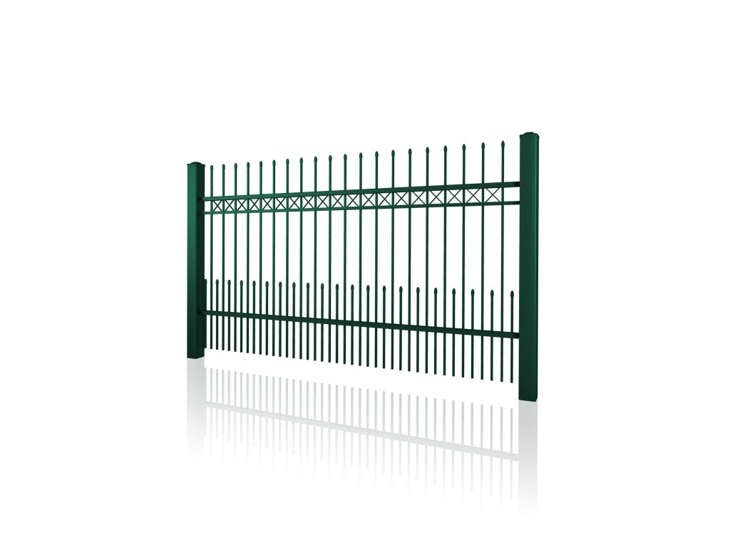 Plotové pole STYLE 10-21, kované, bezúdržbové, na míru (šířka 300–3300 mm, výška 650–1750 mm), zelená RAL 6005 matná