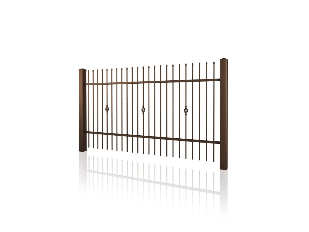 Plotové pole STYLE 10-22, kované, bezúdržbové, na míru (šířka 100–3300 mm, výška 580–1750 mm), hnědá RAL 8014 matná