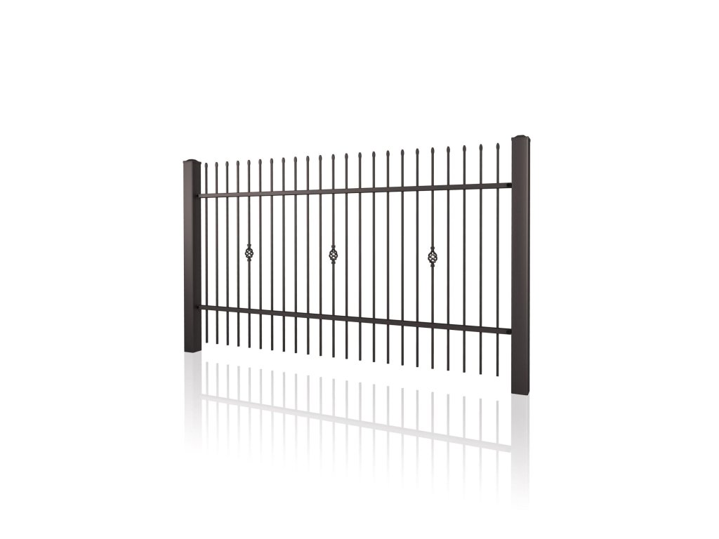 Plotové pole STYLE 10-22, kované, bezúdržbové, na míru (šířka 100–3300 mm, výška 580–1750 mm), hnědá RAL 8019 matná
