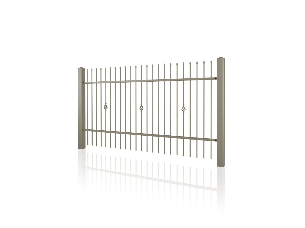 Plotové pole STYLE 10-22, kované, bezúdržbové, na míru (šířka 100–3300 mm, výška 580–1750 mm), šedá RAL 7030 matná