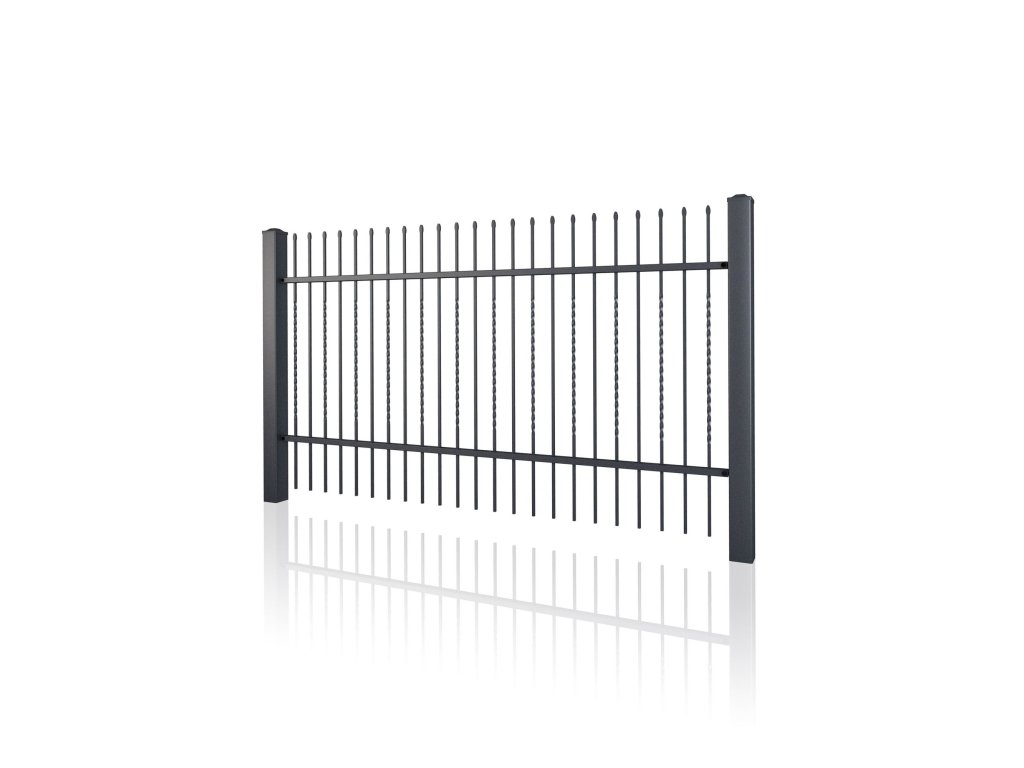 Plotové pole STYLE 10-23, kované, bezúdržbové, na míru (šířka 100–3300 mm, výška 450–1750 mm), černá struktura RAL 9005