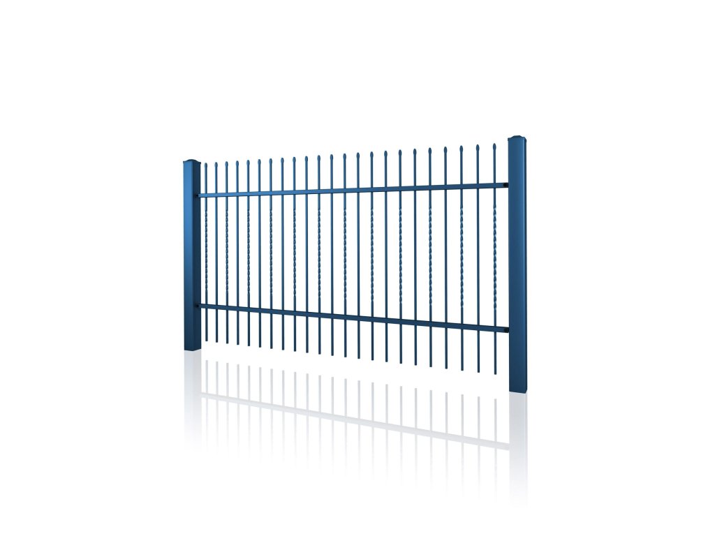 Plotové pole STYLE 10-23, kované, bezúdržbové, na míru (šířka 100–3300 mm, výška 450–1750 mm), modrá RAL 5010 matná