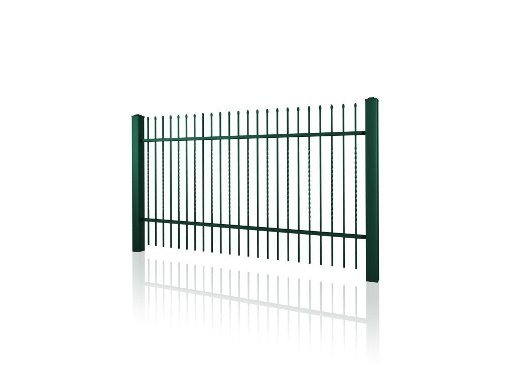 Plotové pole STYLE 10-23, kované, bezúdržbové, na míru (šířka 100–3300 mm, výška 450–1750 mm), zelená RAL 6005 matná