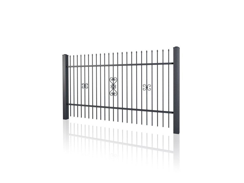 Plotové pole STYLE 10-24, kované, bezúdržbové, na míru (šířka 100–3300 mm, výška 650–1750 mm), černá struktura RAL 9005
