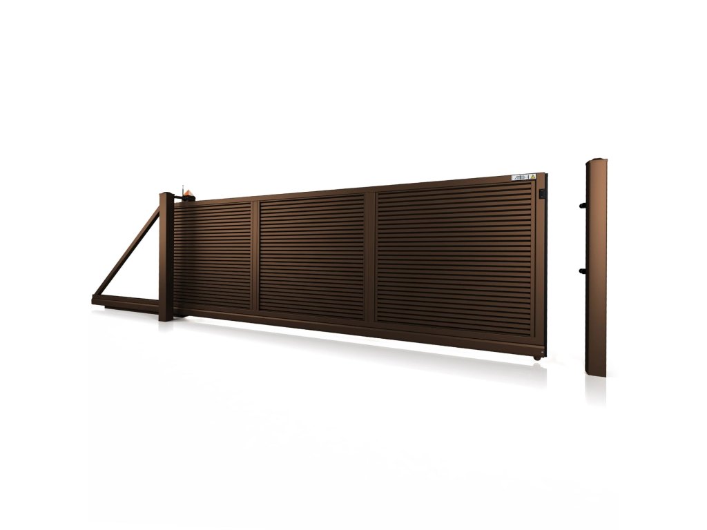 Samonosná posuvná brána 10-233, ocelová, bezúdržbová, na míru (šířka 2400 - 6000 mm, výška 1000 - 1900 mm), hnědá RAL 8014 matná