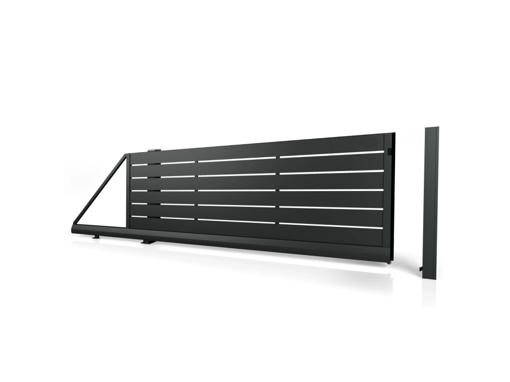Samonosná posuvná brána HN 01, hliníková, na míru (šířka 2400 - 5500 mm, výška 1000 - 2000 mm), černá RAL 9005 matná