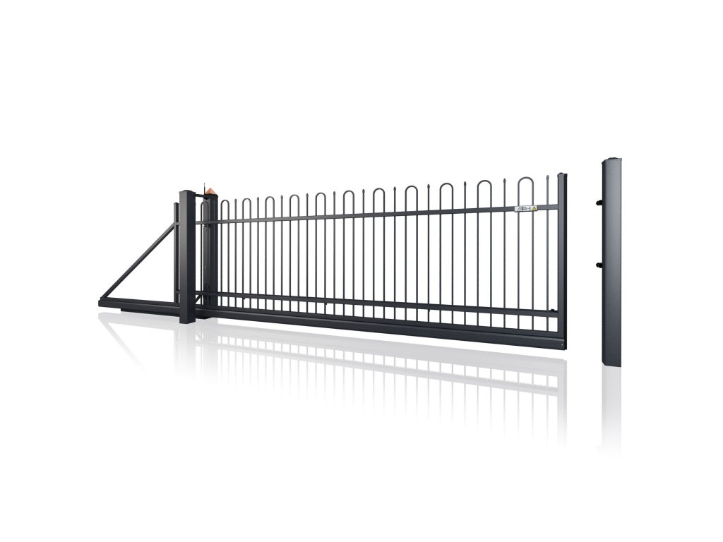 Samonosná posuvná brána STYLE 10-08, kovaná, bezúdržbová, na míru (šířka 1500–6000 mm, výška 1000–1750 mm), černá struktura RAL 9005