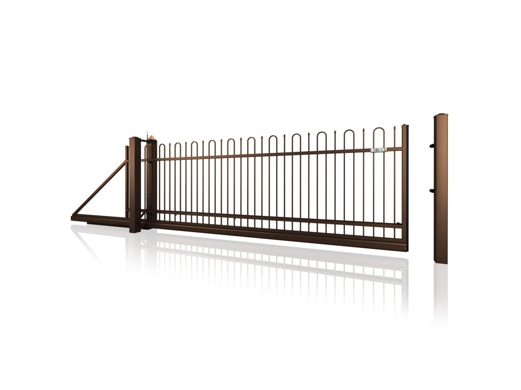 Samonosná posuvná brána STYLE 10-08, kovaná, bezúdržbová, na míru (šířka 1500–6000 mm, výška 1000–1750 mm), hnědá RAL 8014 matná