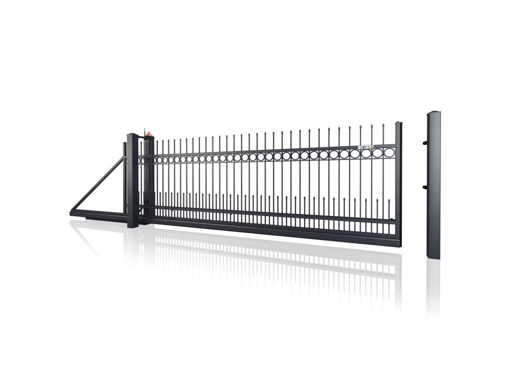 Samonosná posuvná brána STYLE 10-12, kovaná, bezúdržbová, na míru (šířka 1500–6000 mm, výška 1000–1750 mm), černá struktura RAL 9005