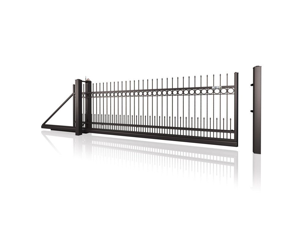 Samonosná posuvná brána STYLE 10-12, kovaná, bezúdržbová, na míru (šířka 1500–6000 mm, výška 1000–1750 mm), hnědá RAL 8019 matná