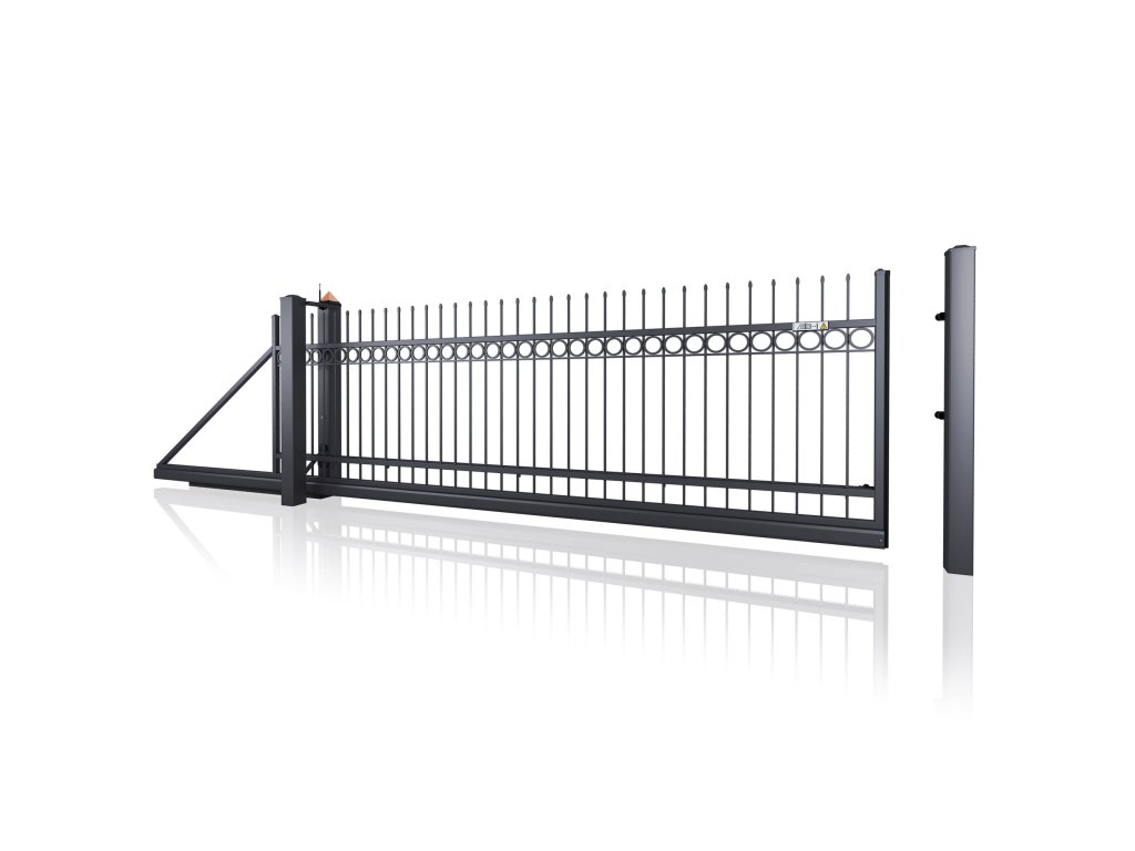 Samonosná posuvná brána STYLE 10-14, kovaná, bezúdržbová, na míru (šířka 1500–6000 mm, výška 1000–1750 mm), antracit RAL 7016 matná