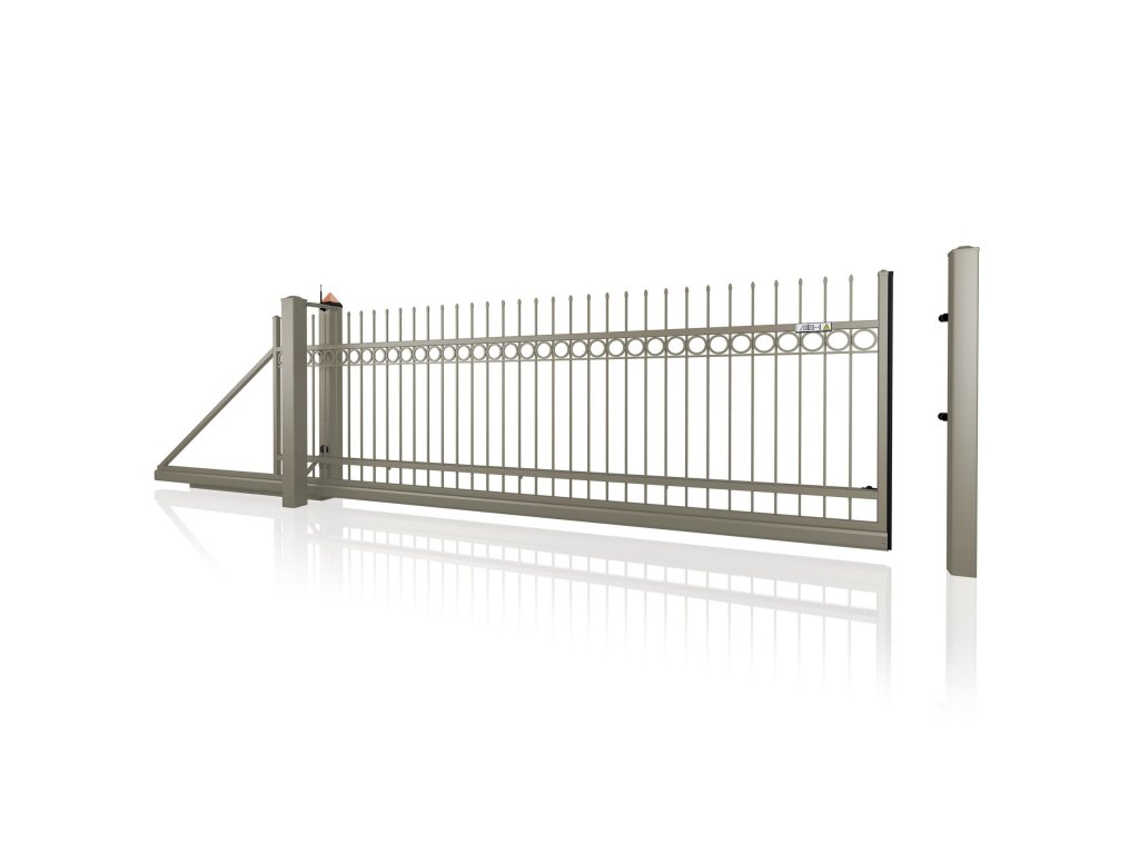 Samonosná posuvná brána STYLE 10-14, kovaná, bezúdržbová, na míru (šířka 1500–6000 mm, výška 1000–1750 mm), šedá RAL 7030 matná