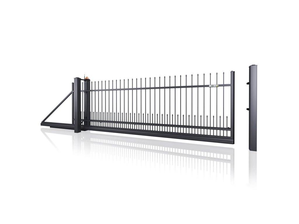 Samonosná posuvná brána STYLE 10-15, kovaná, bezúdržbová, na míru (šířka 1500–6000 mm, výška 1000–1750 mm), antracit RAL 7016 matná