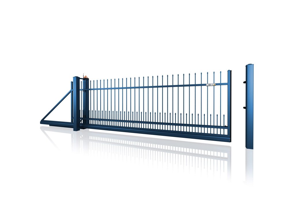 Samonosná posuvná brána STYLE 10-15, kovaná, bezúdržbová, na míru (šířka 1500–6000 mm, výška 1000–1750 mm), modrá RAL 5010 matná