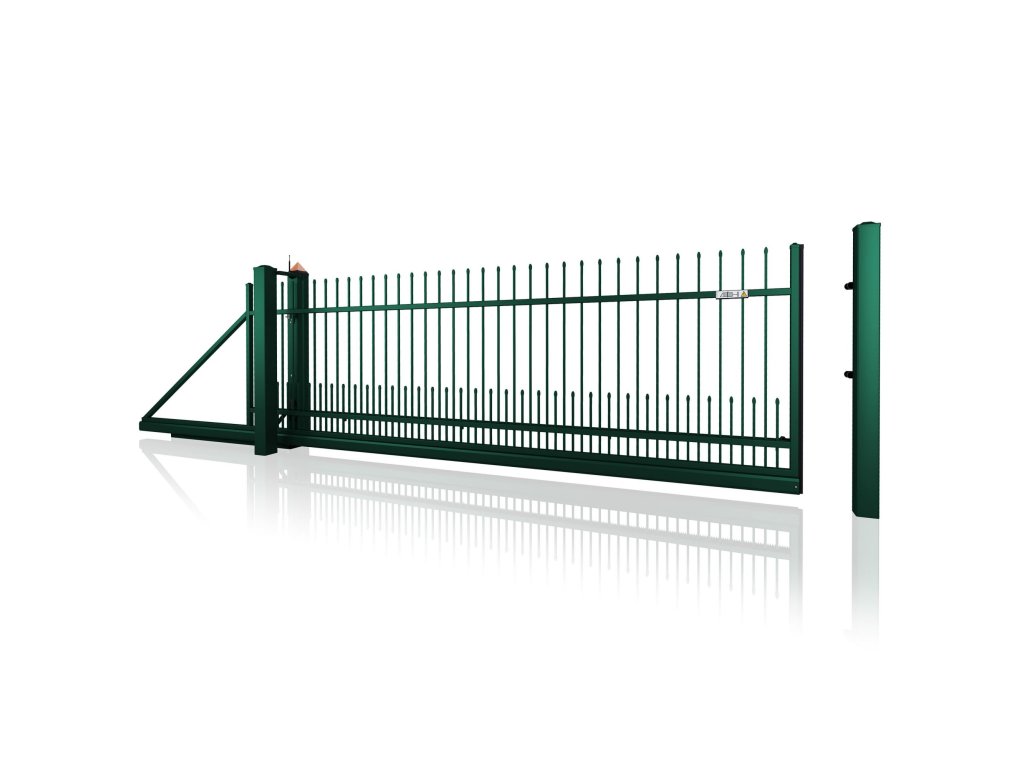 Samonosná posuvná brána STYLE 10-15, kovaná, bezúdržbová, na míru (šířka 1500–6000 mm, výška 1000–1750 mm), zelená RAL 6005 matná
