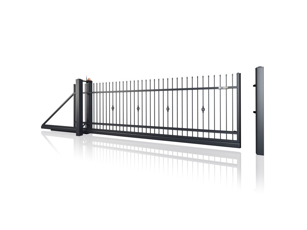 Samonosná posuvná brána STYLE 10-22, kovaná, bezúdržbová, na míru (šířka 1500–6000 mm, výška 1100–1750 mm), černá struktura RAL 9005