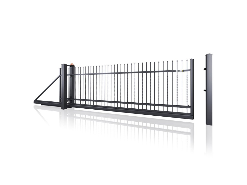 Samonosná posuvná brána STYLE 10-23, kovaná, bezúdržbová, na míru (šířka 1500–6000 mm, výška 1100–1750 mm), antracit RAL 7016 matná