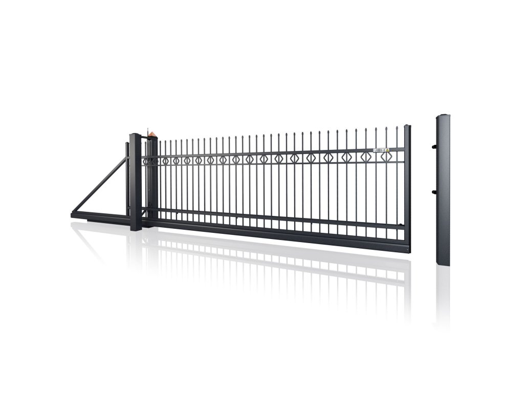 Samonosná posuvná brána STYLE 10-25, kovaná, bezúdržbová, na míru (šířka 1500–6000 mm, výška 1000–1750 mm), černá struktura RAL 9005